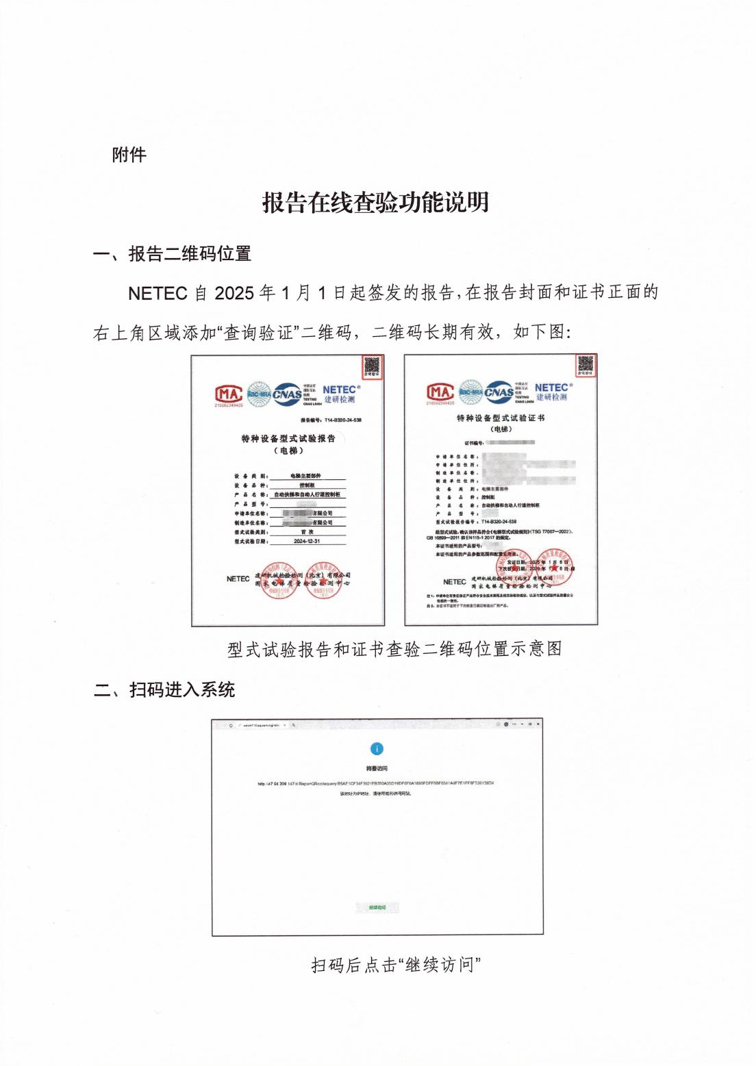 關于測試啟用報告和證書在線查驗功能的通知