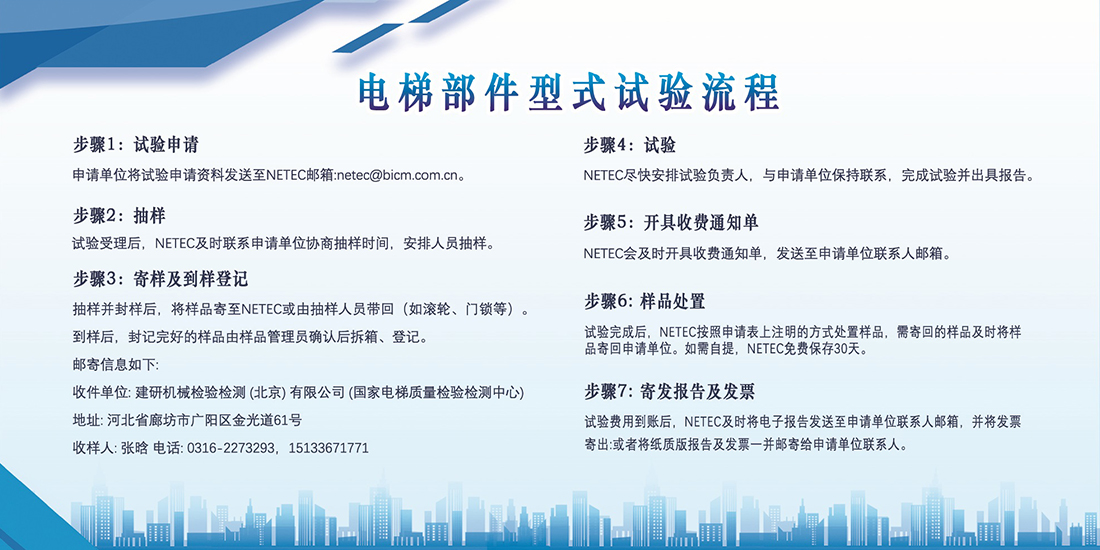 NETEC是在國內(nèi)最早開展電梯檢驗及型式試驗的機構(gòu),試驗電梯種類覆蓋全梯種,包括曳引與強制驅(qū)動電梯、液壓驅(qū)動電梯、自動扶梯與自動人行道、防爆電梯、消防員電梯、雜物電梯、斜行電梯及特殊電梯等;試驗業(yè)務(wù)遍布全球各地,中國尊北京中信大廈、上海中心大廈、上海環(huán)球金融中心、上海東方明珠大廈、廣州新電視塔、日本愛知縣三菱電梯總部、瑞士盧塞恩迅達電梯工廠、芬蘭赫爾辛基通力電梯總部等地均有NETEC服務(wù)的足跡。