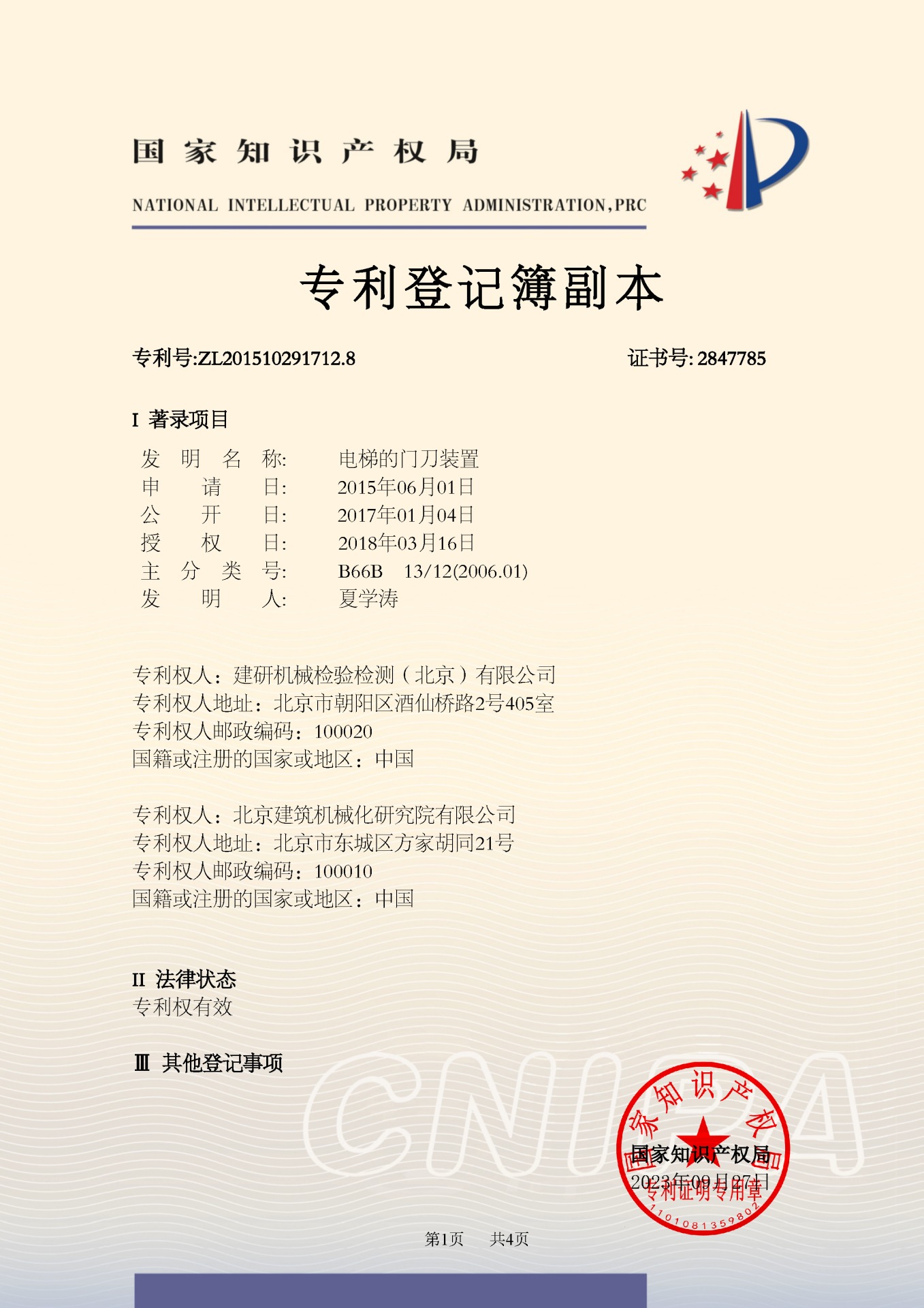 實(shí)用新型專利——一種電梯意外移動(dòng)保護(hù)裝置測(cè)試...