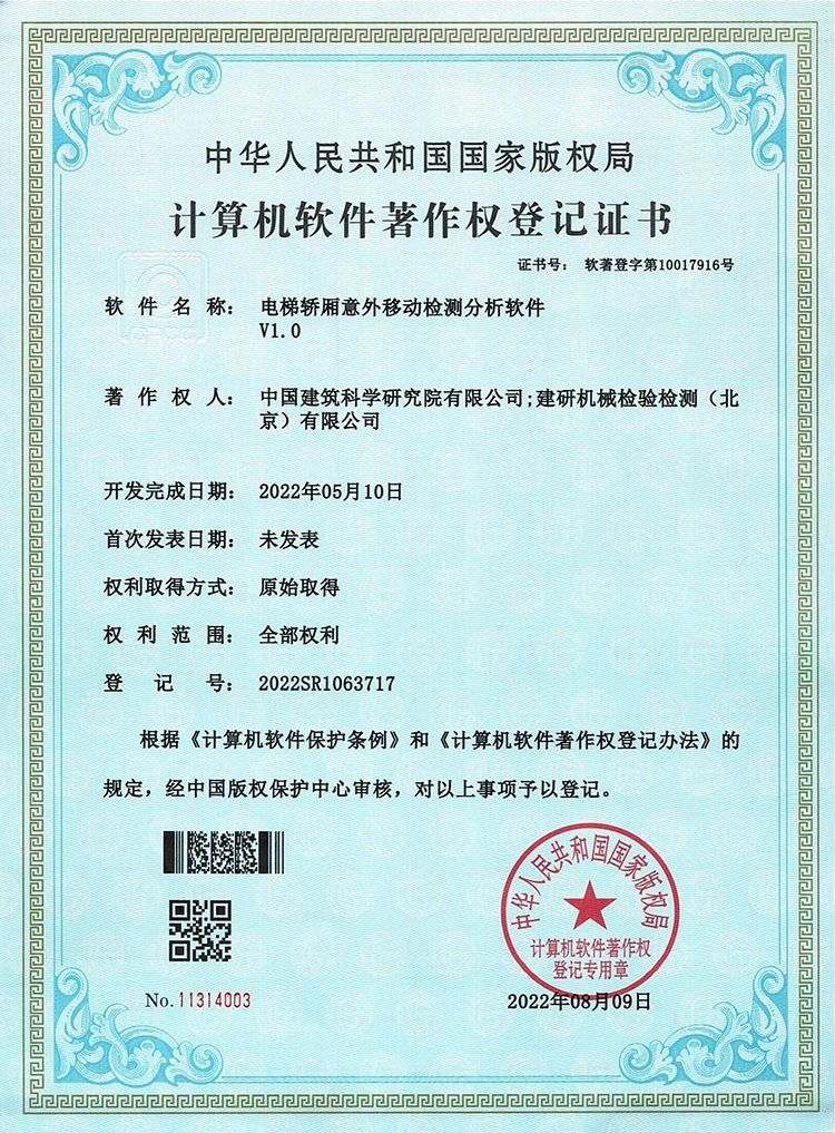 軟件著作——電梯轎廂意外移動(dòng)檢測(cè)分析軟件V1.0...